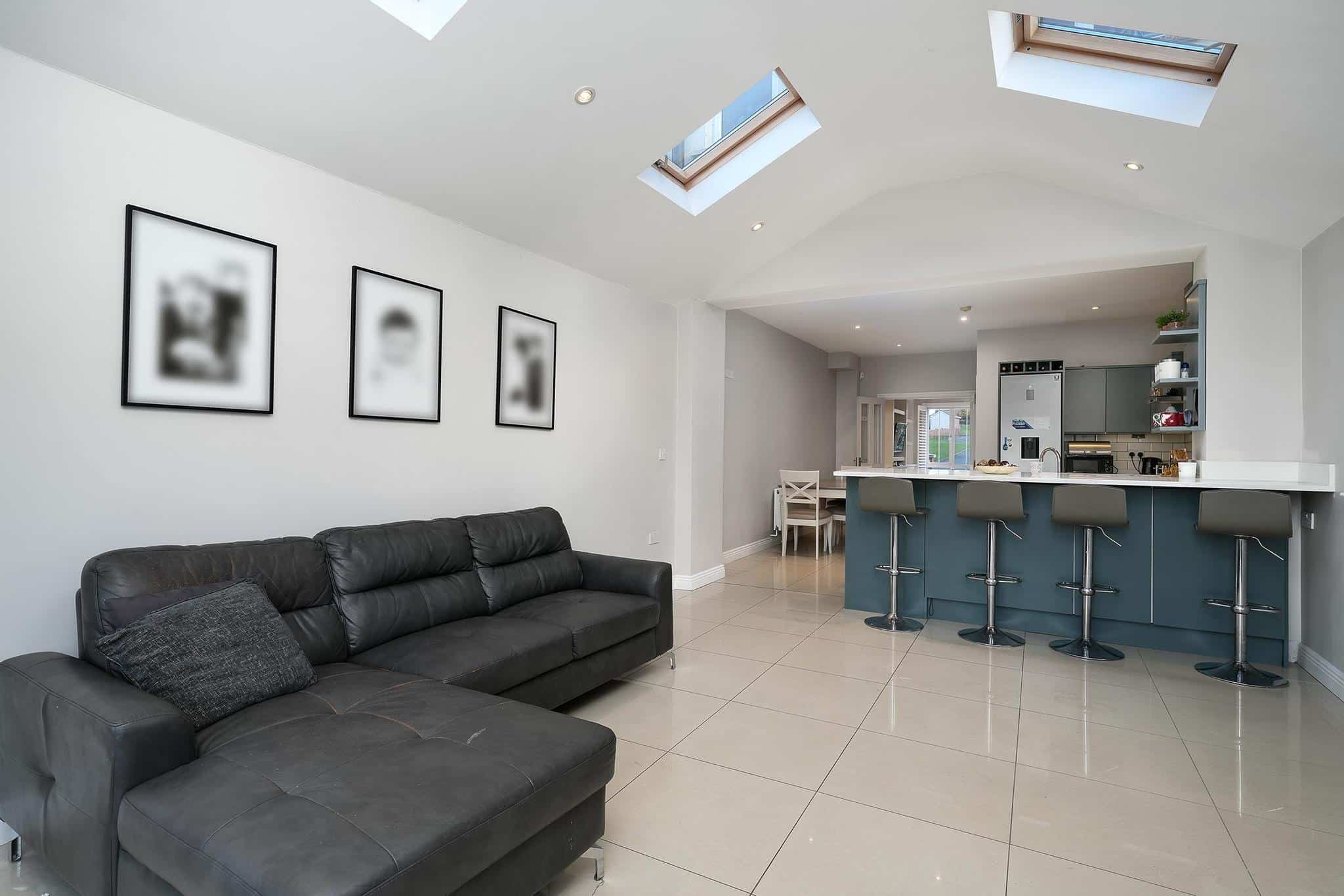 – Extra-large living room with bay window