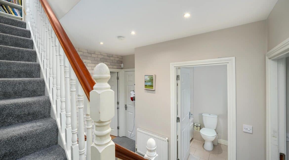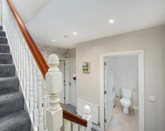 Externally you will find a fully enclosed private rear garden of the lowest maintenance whilst the front provides private off-street parking overlooking a large green area with fantastic scenic views. No. 4 comes to the market in no less than turnkey condition throughout having been lovingly maintained by its current owners with no expense spared when upgrading in recent years and is the perfect home for any growing family looking to set roots in one of Rathcoole’s most sought-after developments. Further benefits are B1 energy rating, gas fired central heating, private rear garden, 2 ensuite bathrooms and plenty of ample storage.