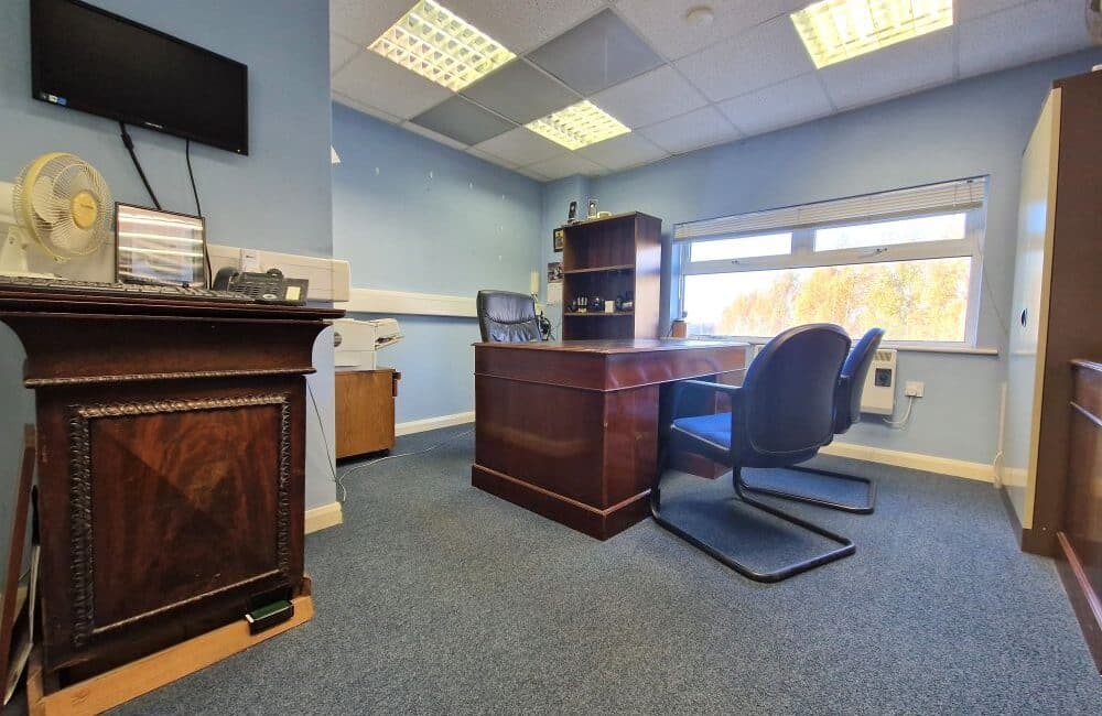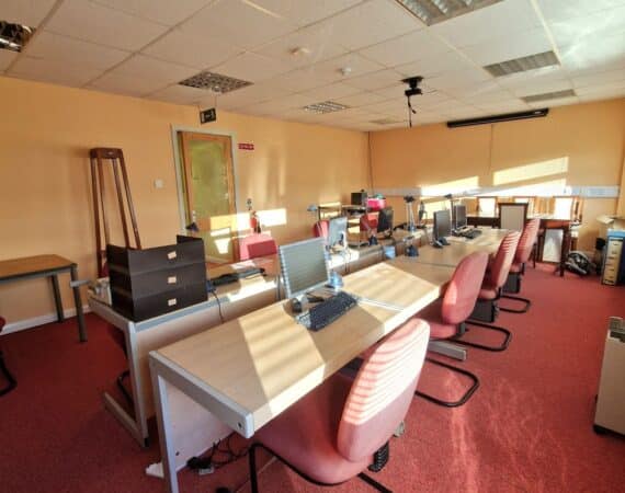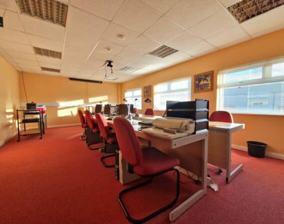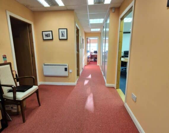 Unit P5 is a c. 154 Sq. m. / 1657.64 Sq. Ft in size, and comprises of a reception area on the ground floor, and offices on the first floor comprising of 2 individual offices, a boardroom, comms room, a large open plan office space, canteen and W.C. facilities x 2. There are also 3 designated parking spaces coming with the unit.